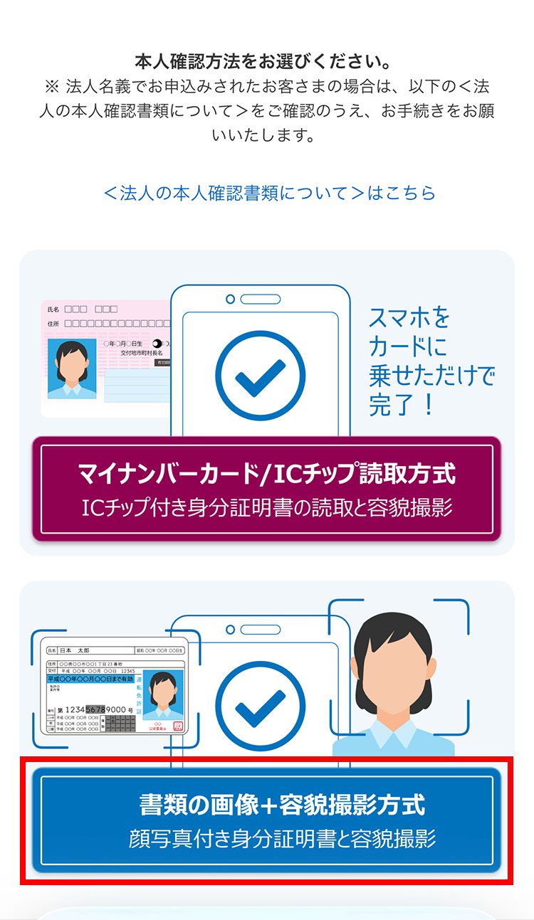 本人確認書類と本人の容貌(顔)を撮影して本人確認を行います。