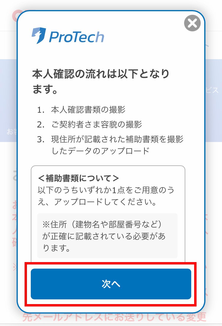 案内事項に記載されている必要書類を準備して、次へをタップします。