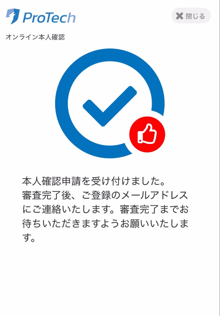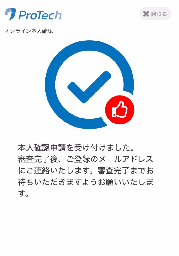 本人確認申請を受け付けました。審査完了後、ご登録のメールアドレスにご連絡いたします。審査完了までお待ちいただきますようお願いいたします。